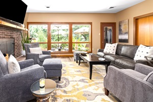 🛋️ Spacious comfort: Nearly 500 sq ft Great Room with 65" Roku TV, cozy seating, and throws for in/outdoor lounging and Sunroom seating and mini-bar
